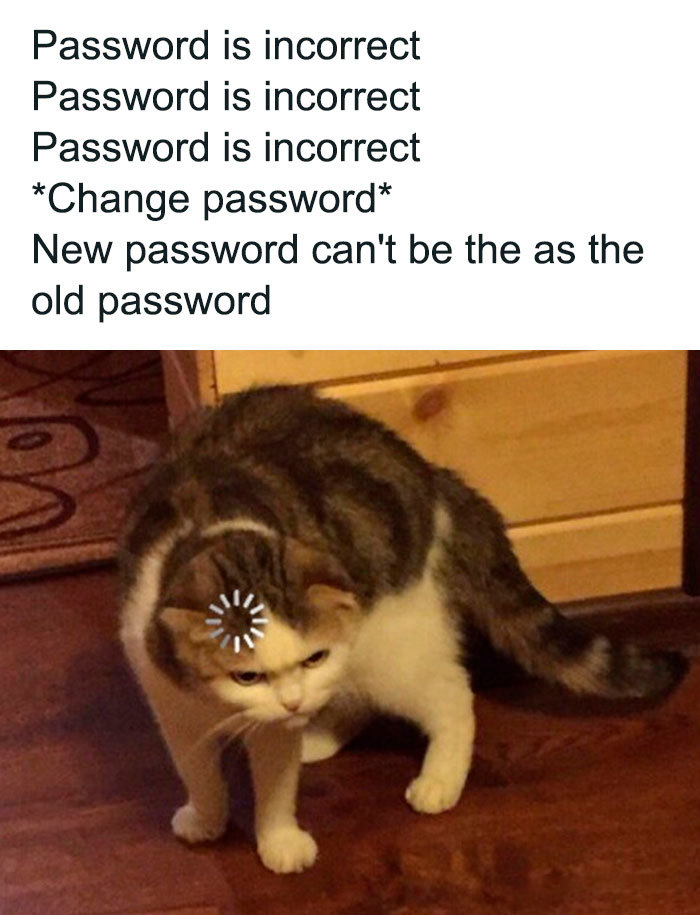 Being in one’s own company is great. It’s a totally pressure-free zone most of the time. We can really be ourselves without getting strange looks from other people. Interestingly, some of the weirdest behavior happens when we’re alone. For example, forgetting your password. Have you ever been to a website, entered your password (you think) correctly, and it just not work? Over and freakin’ over? Then, when you go to reset it, the website won’t let you use the “previously used password” that you entered a zillion times? Yep, me too. And everyone else. Enjoy these!